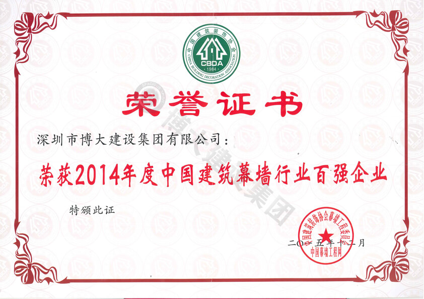 2014年度中國建筑幕墻行業百強企業