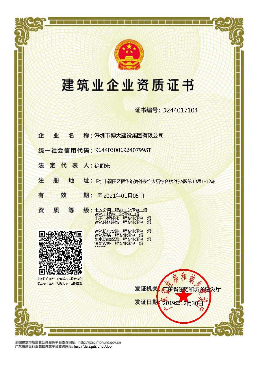 博大建設(shè)集團(tuán)作為行業(yè)最具發(fā)展活力的領(lǐng)軍企業(yè),近年來發(fā)展速度迅猛,2019年繼續(xù)保持穩(wěn)步增長,業(yè)績過百億。在各級領(lǐng)導(dǎo)的關(guān)懷和全體家人的共同努力下,集團(tuán)資質(zhì)建設(shè)取得新的進(jìn)展,榮獲6項(xiàng)建筑資質(zhì)!