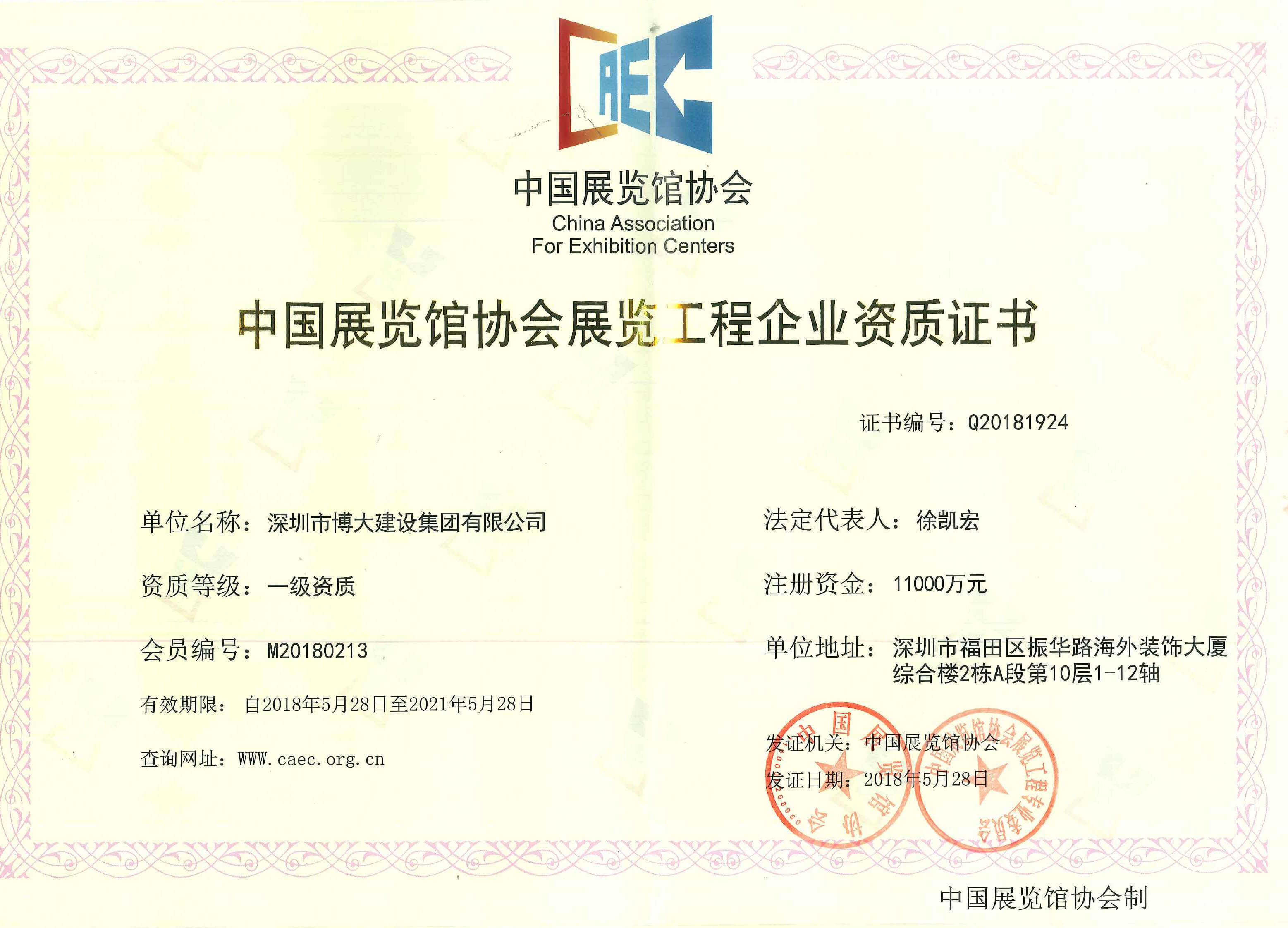 博大建設(shè)集團作為行業(yè)最具發(fā)展活力的企業(yè),近年來以迅猛的成長速度,得到了越來越多的關(guān)注和認(rèn)可。在各級領(lǐng)導(dǎo)的關(guān)懷和全體家人的共同努力下,集團資質(zhì)建設(shè)取得新的進展:獲得展覽工程企業(yè)一級資質(zhì),展覽陳列工程設(shè)計與施工一體化一級資質(zhì)。