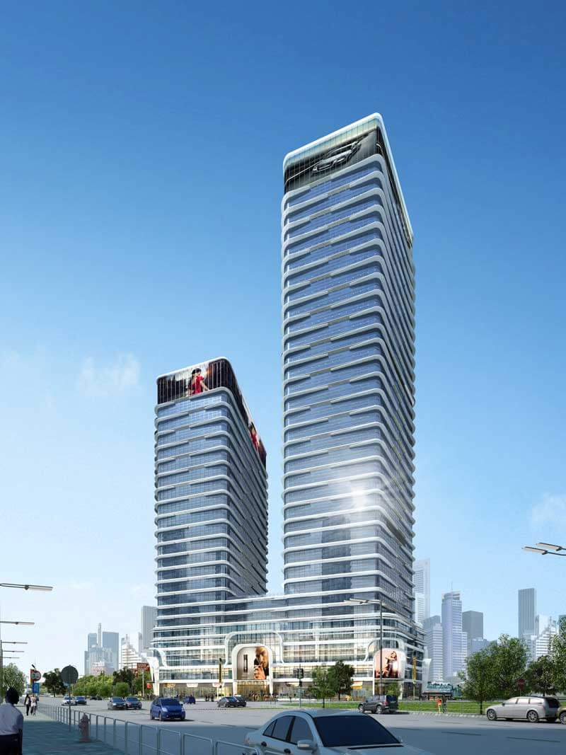 141.9米高度,橫琴國際商務服務基地位于廣東省珠海市橫琴自貿區,幕墻面積7.2萬平方米。項目采用了單元式玻璃幕墻、鋁板幕墻、大跨度幕墻。