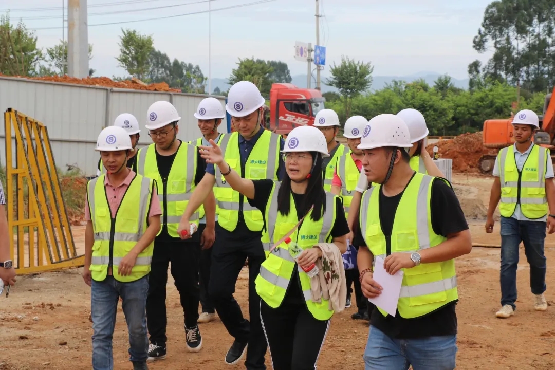 圖丨集團副董事長黃河(后排右五)、廣西分公司總經理李培陽(后排右四)視察項目