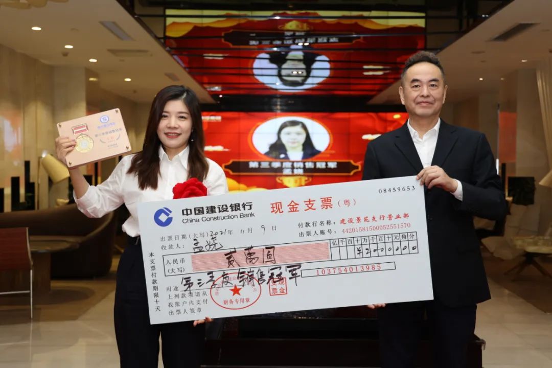 圖 | 董事長洪宇為孟嬈頒發(fā)第三季度銷售冠軍獎