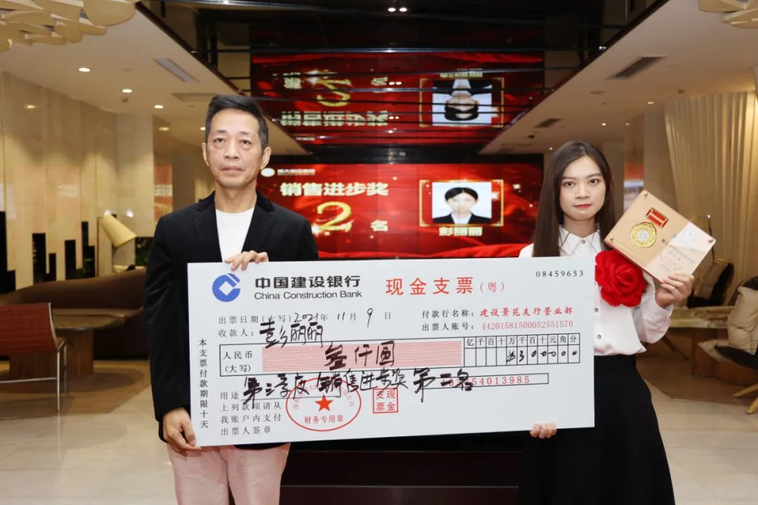圖 | 集團副董事長李朕鴻為彭麗麗頒發(fā)第三季度銷售進步獎