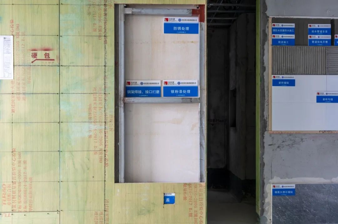 項目部除嚴格管控材料質量外,也嚴格把控過程施工質量,從基層彈線、龍骨排版、線管施工、艾特板安裝、夾板施工、防水施工等基層施工,每一道工序都嚴格按照標準、技術要求、工法樣板進行施工。