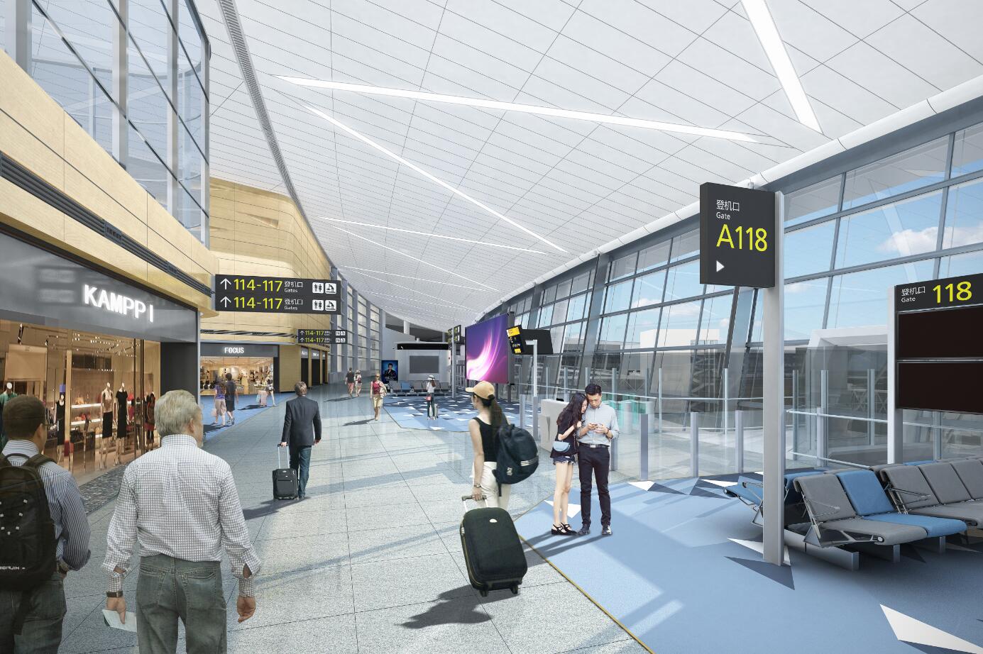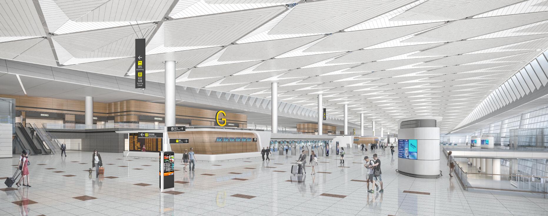 博大承建范圍涵蓋T2航站樓L2層到達(dá)迎賓廳、行李大廳、APM站臺(tái)、遠(yuǎn)機(jī)位到達(dá)及旅客區(qū)域;L1層國(guó)內(nèi)遠(yuǎn)機(jī)位出發(fā)的精裝修工程及部分安裝工程施工等。